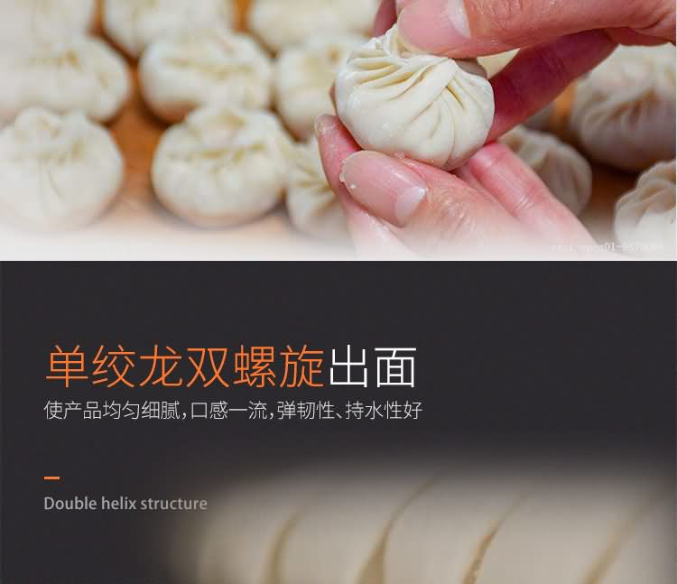 ?采用單絞龍、雙螺旋結(jié)構(gòu),充分保護(hù)面筋,使產(chǎn)品均勻細(xì)膩,口感佳,彈性好、持水性好,遠(yuǎn)超手工制品;