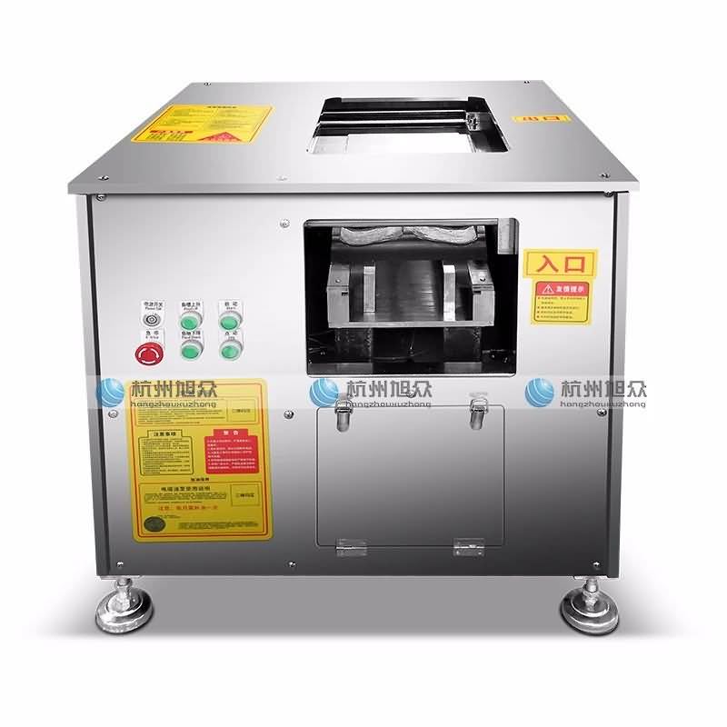 大型切魚片機(自動進料)采用多組刀片同時斜切的原理,完善了單刀切片效率慢和切片不均勻的難題,真正意義上實現了多片斜切。魚片機專業用于鮮品、雞胸、鴨胸、里脊肉片、牛肉、羊肉、各種魚柳,把需要處理的樣品放在刀梳上,機器可一次性自動切割成片。每小時100Kg-150kg,日產量可達1噸以上。但是!!!此款設備最薄只能定做3mm,如要定做1.8-3mm以內范圍的規格另擇其它魚片設備!