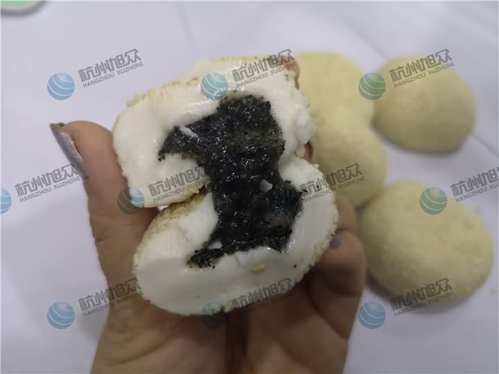 那么旭眾的麻球機究竟是怎樣的呢?那就是我們的多功能包餡機!昨日客戶將在自己食品廠和好的面團、袋裝的黑芝麻餡料及裹在外層的白芝麻帶來了現場,因為他們目前還是人工包芝麻成型,在人工投入方面非常的大,但是還是缺人,可以想象他們每日的生產量是有多大,于是他們帶著直接做好物料來到了現場,只要能看到包餡機做出他們想要的效果便可,那么來看看XZ-99多功能包餡機做出來的麻球是怎樣的: