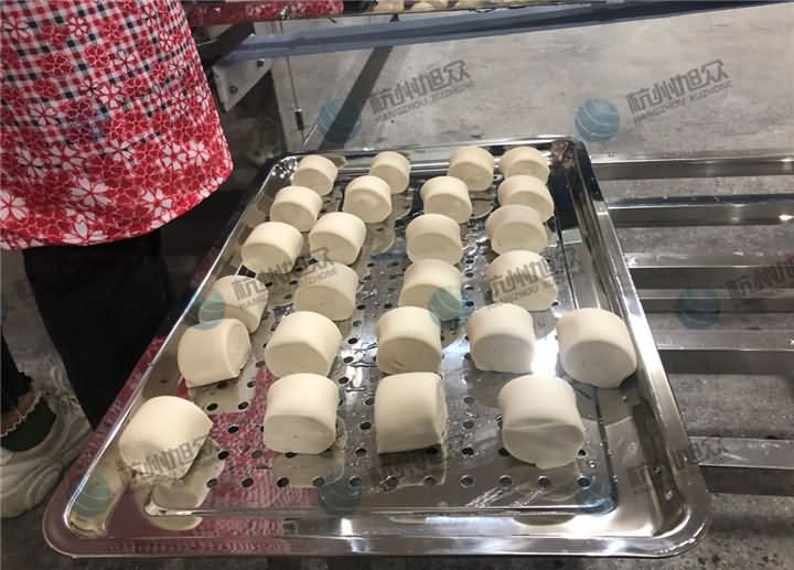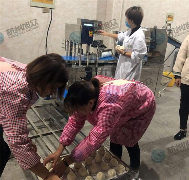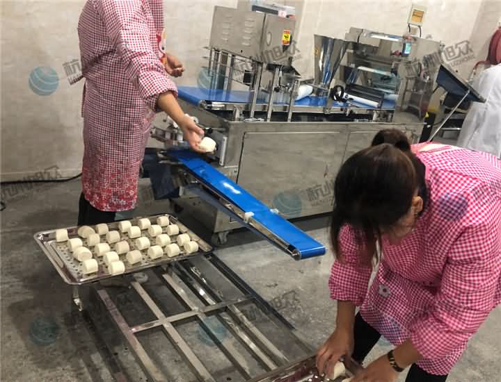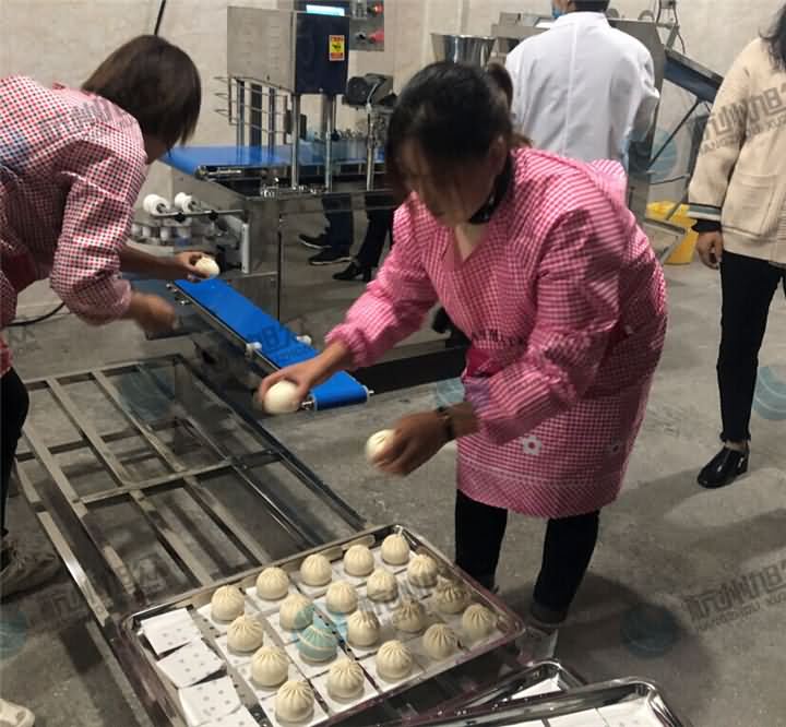食品廠專用包子饅頭機(jī)做包子、饅頭,多功能包餡機(jī)做青團(tuán),兩臺(tái)機(jī)器搭配使用,產(chǎn)量是跟上了,不過(guò)好像還是需要人員幫忙去擺盤等等后續(xù)工作,那么我們來(lái)看看它們齊聚一堂是如何分工合作的狀態(tài):