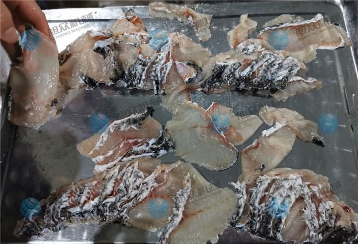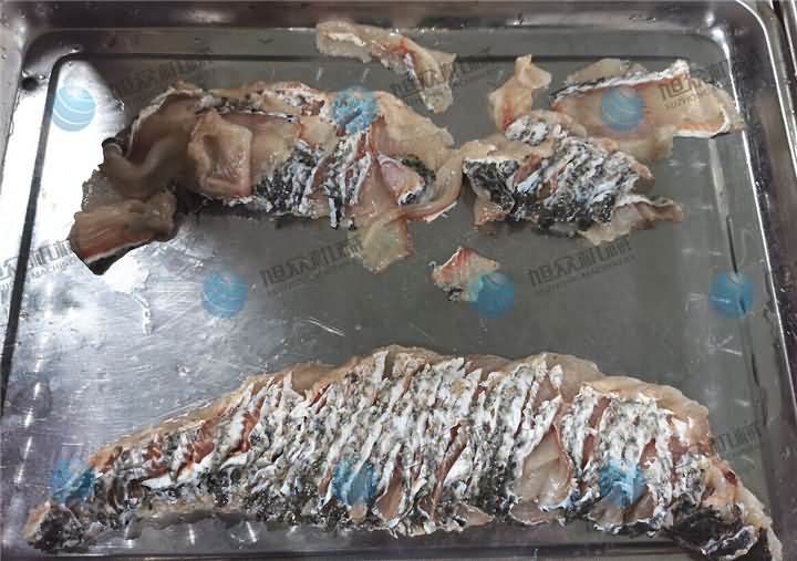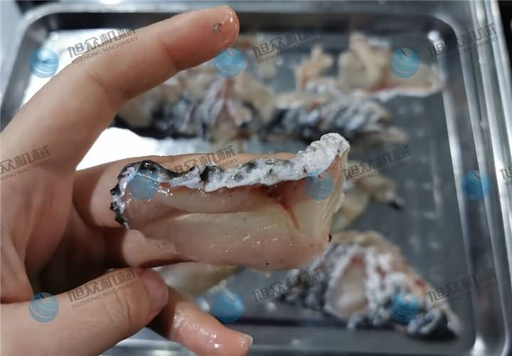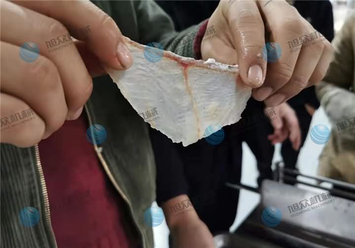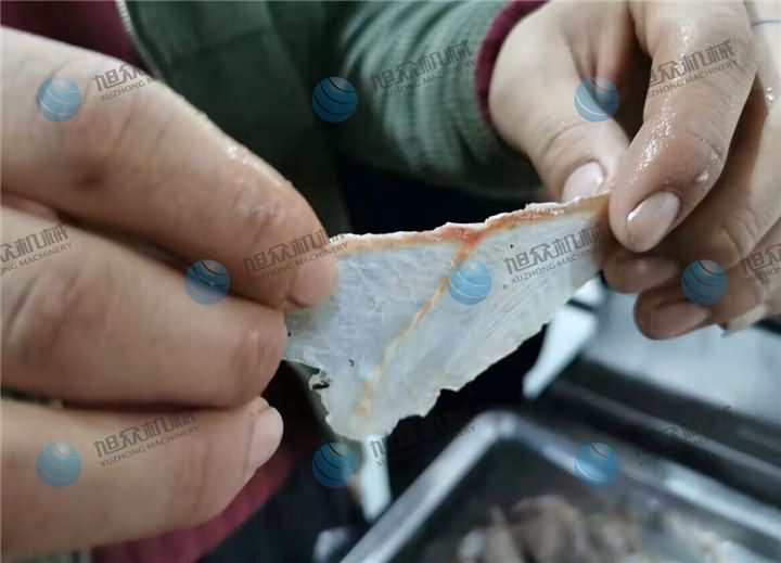 斜切魚片機操作非常的簡單,這不是騙人的哦!前天有客戶來試切魚片機,剛好試機師傅再試另一臺包子機,為了減輕同事們的壓力,于是作為攝影師的我親自上陣,因為我拍過很多視頻,看過無數遍師傅們的操作過程,于是我便先拿起客戶帶來的黑魚,去完鱗分半的那種,不過發現大的魚骨沒有剔除,對于第一次接手的我來說,剃魚大骨也是需要一門技巧,花了些時間將魚骨剃掉后,放在送料板上放點水潤滑下,送入魚槽中,開啟開關等個十幾秒魚片就切好了。客戶看了效果后帶回去給大廚看了之后,今天就轉賬定購設備了。他說【不光是切魚片機切出來的魚片效果好,還有一個原因就是操作簡單,他也知道我第一次上手試切魚片機,在沒人幫助下就能完成,這樣以后如果來新人也能很快的上手】