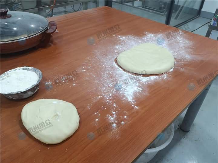 步驟三:將面皮平鋪放置酥餅機的上輸送架