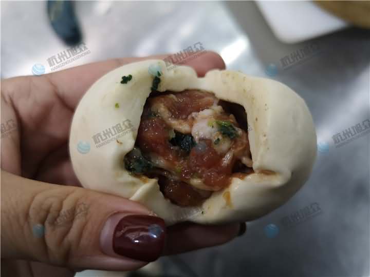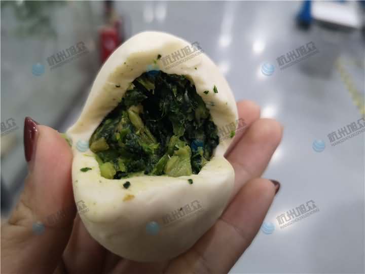 旭眾包子機究竟給人們帶來了多大的方便?今日來了幾波客戶來考察包子機設備,印象比較深的就是要做2種不同餡料的客戶,提前將蔬菜餡寄過來冷藏,今日終于到達還帶了今日剛拌好的肉餡,一個是想看包子機能將兩種肉餡和菜餡包合住,再一個包子機效率及外觀,但是要用價格實惠花紋十二褶的包子機給他演示效果,于是便安排了SZ-612包子機,一小時1800個成品,十二褶花紋,價格方便也算是包子機中第二優惠,在現場的老板們可以很直觀地看到,從和面到做包子全程僅需1-2名師傅便可完成,實際只需一個也可以,只不過多一個人方便快速將成型的包子擺盤好。