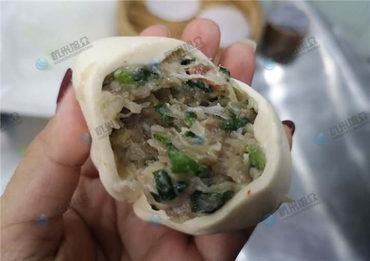 皮薄餡料十足,餡料一看就非常好吃的樣子,當然最后蒸出來的樣子跟以往做的死皮湯包不一樣,因為包子被人工刻意去壓扁,就會導致蒸的過程中,有部分位置面皮太厚沒有蒸到位,于是客戶決定下次再帶餡料過來試包子機,因為他認為現在是需要包子機的時候,很多員工回家的回家,請辭的請辭,有這么一臺包子機在就不用擔心包包子跟不上銷量速度!歡迎來電400-885-2117咨詢包子機!