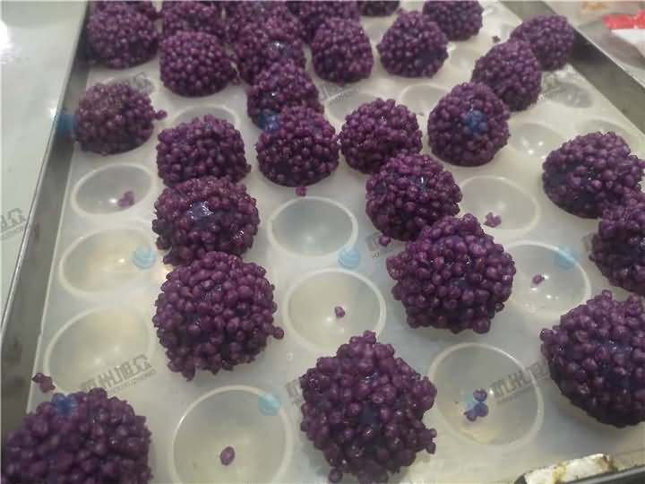 老客戶再次咨詢做紫薯球設備,之前有購買的糍粑機不適合生產紫薯球,所以知道想看看湯圓機做出來的紫薯球效果,物料自行準備:紫薯面團、香芋餡料、雞蛋、各種雜糧米。