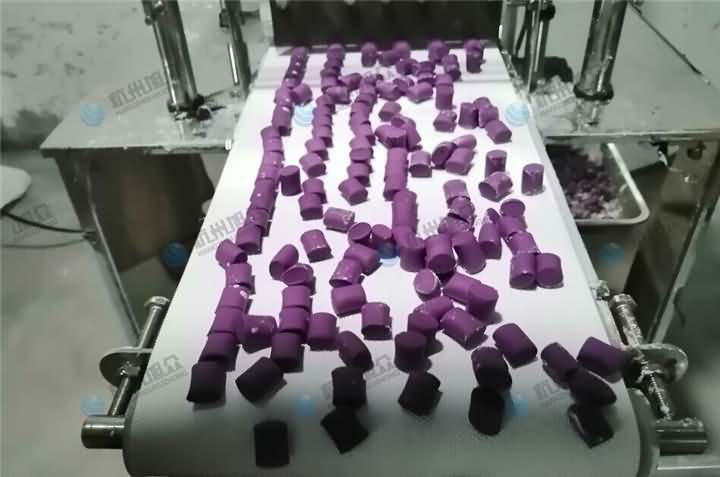 紫薯芋圓究竟是用湯圓機還是芋圓機呢?以往我們客戶做的芋圓都是方方正正的那種,近期有某個客戶也是做的紫薯芋圓,自然而然就給他推薦了芋圓機,當他帶著做好芋圓來到我司后,發現原來他做的紫薯芋圓卻是圓形的,如果是圓形的芋圓那就不好再用芋圓機去生產,轉而選擇VFD-1200湯圓機。那么湯圓機制作的紫薯芋圓是怎樣的呢?
