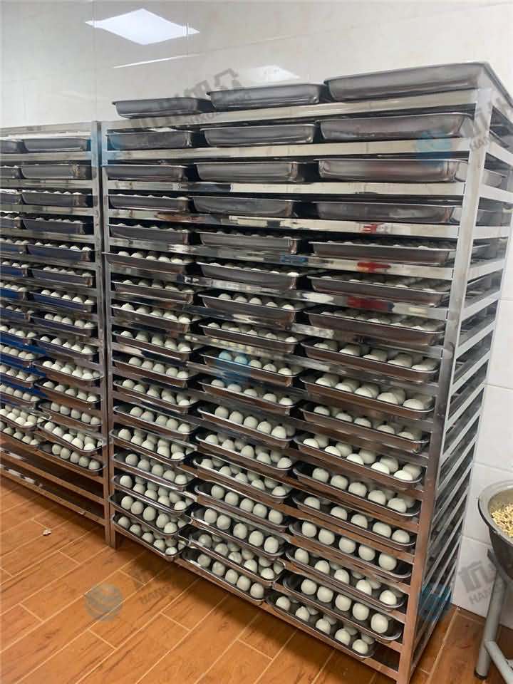 來自富陽的許老板帶著員工一起跟著師傅學習操作多功能包餡機,歷經幾個小時的培訓,終于步入員工和老板都能操作包餡機生產熟米粿正軌上,看著一排排的熟米粿,許老板不經感嘆到,以往得安排四五個員工花至少也得半小時時間才能做出這么多量,如今只要安排一兩人和面拌餡,一人撿盤擺盤放盤便可,效率也是蹭蹭蹭的往上漲,早知如此就該早點買包餡機!
