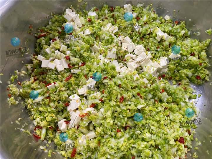 說的還是昨天考察包子機餃子機的客戶,上午試完做肉餡包后,下午則試做豆腐包菜餡的包子,除了餡料也是客戶帶過來的廚師現場拌,其余和面啊、切菜餡啊都是通過和面機、菜餡機、包子機、醒發箱、蒸柜等設備。我發現每個餡料廚師都要放剁碎了的紅椒,他說千島湖那邊味道都是偏重、偏辣。讓我沒事去那邊吃吃他們正宗調的包子餡料