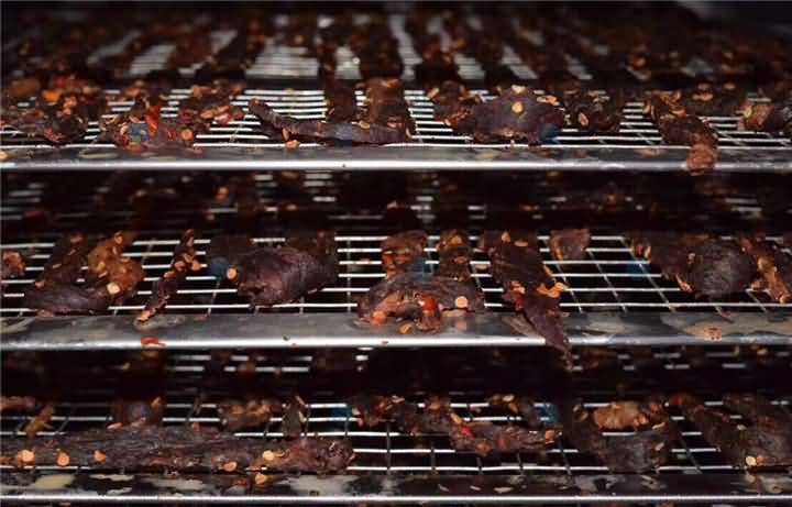 牛肉干的生產工藝流程:選料→腌制→烘干→冷卻→包裝,研究表明,與傳統工藝相比,通過循環熱風烘干的牛肉色澤更均勻,口味更佳,并且可以有效的避免因天氣因素造成的變質問題,且要保證牛肉的口感。那么先來看看經空氣能烘干機烘干后的牛肉干效果: