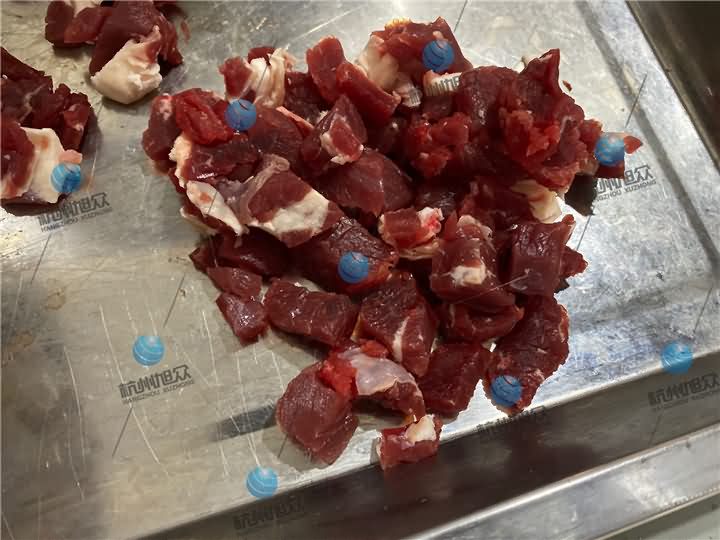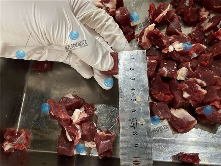 旭眾XZ-QD切丁機專業切不帶骨肉類丁狀,新鮮牛肉切2cm的丁狀效果: