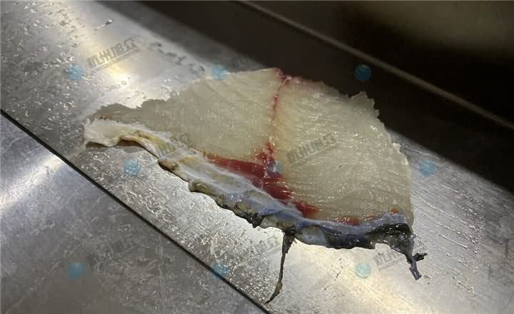 斜切魚片機均適合切各類剔好骨頭的魚,五花肉,牛百葉,豬肝,牛肝,魷魚等新鮮或完全解凍不帶骨刺的食材。客戶群體:火鍋店,酸菜魚,水煮魚店,機關食堂酒店等各類餐飲公司。斜度及厚薄默認標準為35°、2.5毫米,斜度有(25°、30°、35°、40°、45°)可供選擇定制,厚度可從1.8毫米到10毫米范圍定制,定好規格不能調整,不能更換。斜度越小,魚片越寬。