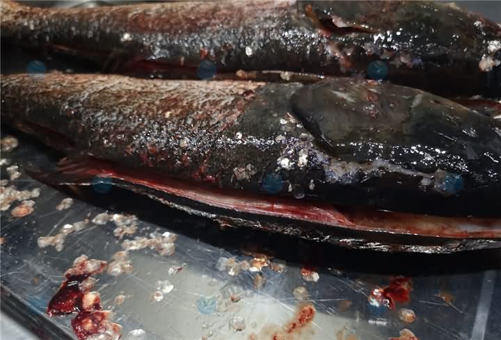 從圖中可以看出來,其中一條花鰱的頭部魚皮有些損耗,像做剁椒魚頭的餐館肯定是接受不了的。魚頭為什么會有損傷呢?全自動殺魚機自帶去魚鱗功能,在你放魚的過程中放的速度過慢,去魚鱗會將魚頭刮傷,放快一點那么花鰱身上的魚鱗就不會去的那么干凈。所以當你既想保留它完整的魚頭,又要將魚身的魚鱗刮干凈,我們是建議客戶購買兩臺設備搭配使用的。更多關于殺魚機詳情來電4008852117咨詢客服。