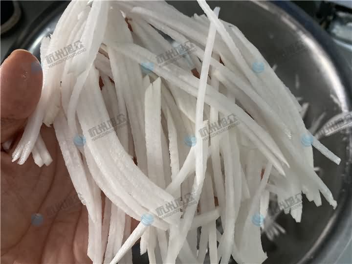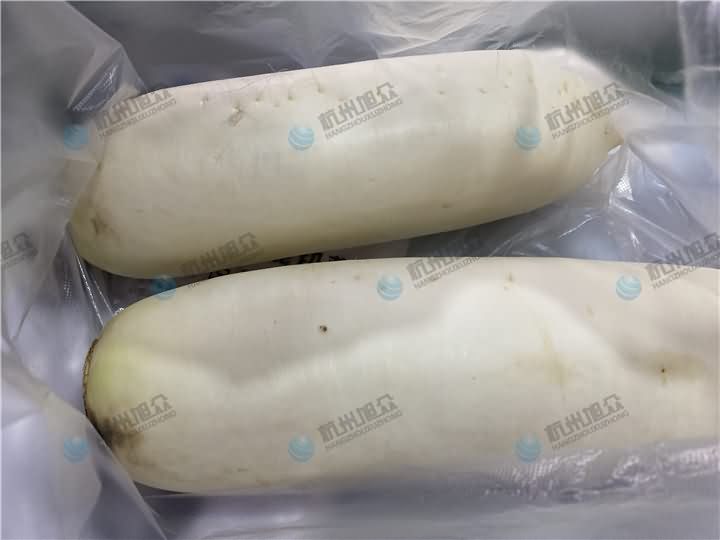 想要看XZ-680A多功能切菜機切蘿卜絲和榨菜絲,但是因為距離問題不能實地考察設備,于是便去附近菜市場買幾個蘿卜和榨菜回來,現場直播給客戶看看切菜機切絲效果: