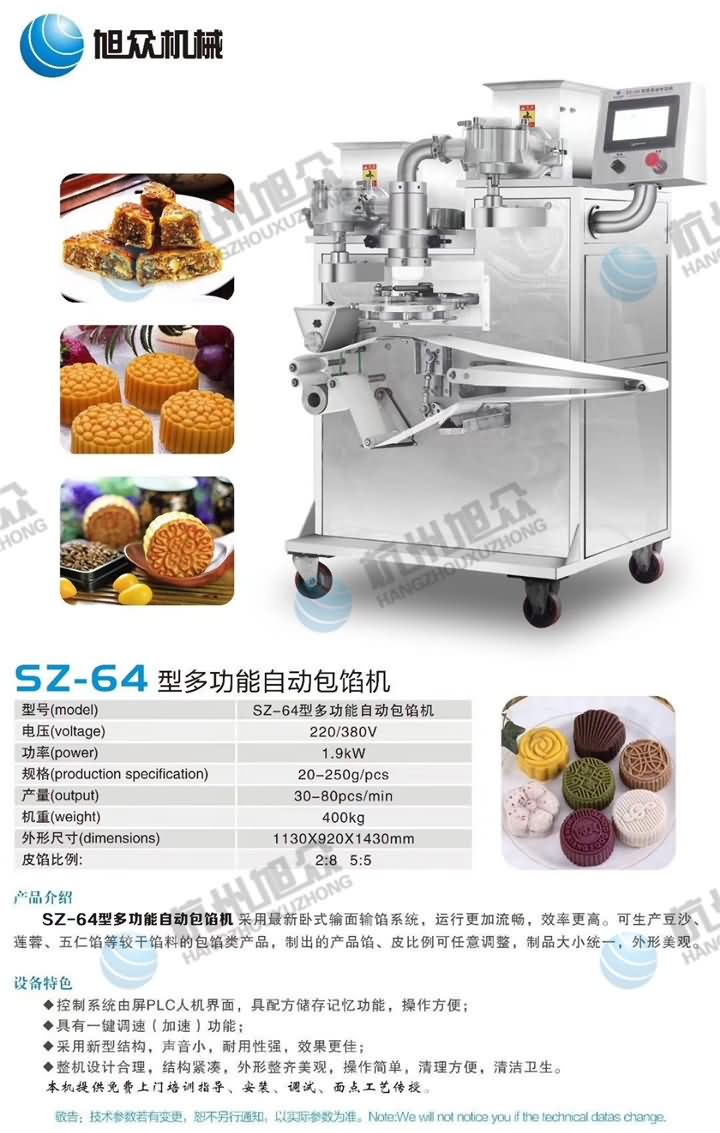 月餅工藝不同,選擇的月餅機設備也不一樣,旭眾月餅機型號大全,想知道自己的產品適合用哪款全自動月餅機嗎?歡迎撥打4008852117咨詢客服預約上門考察月餅機,想要現場試機的客戶需自備物料來到現場哦!