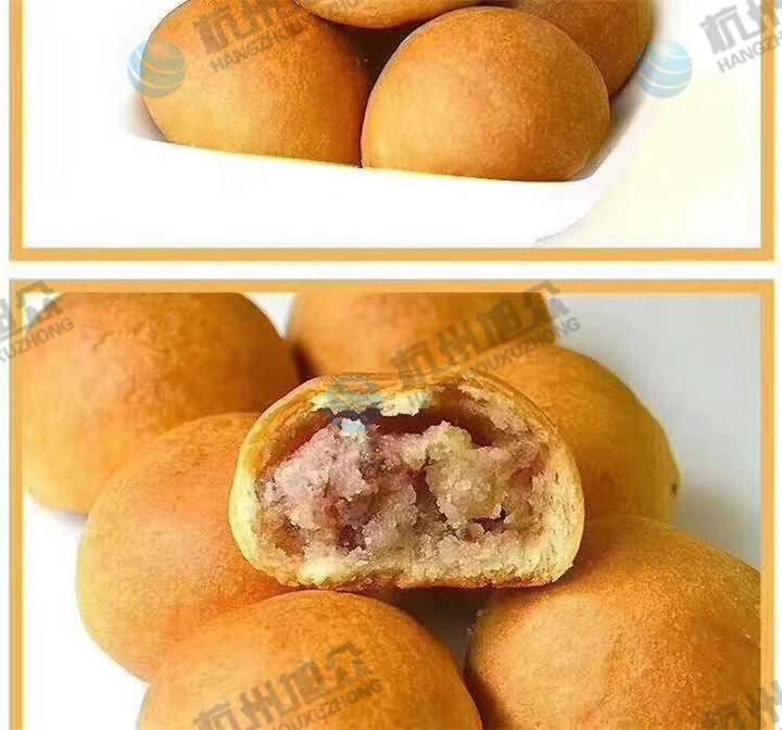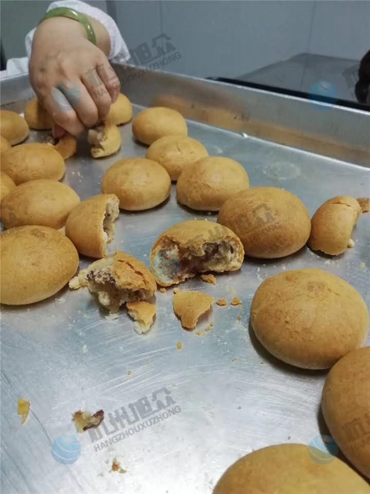旭眾SZ-64月餅包餡機做的云腿月餅 金華火腿肉丁月餅效果: