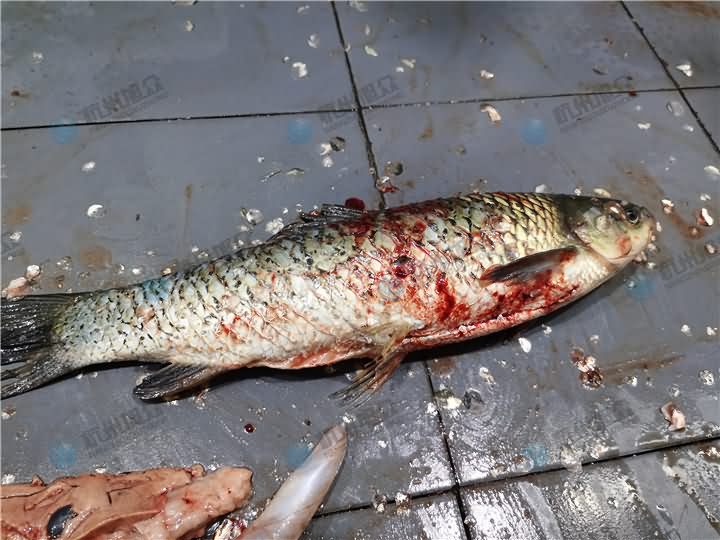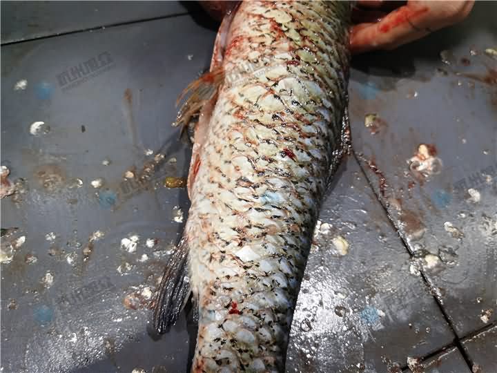 其實看圖一的時候可以看得出來,接近魚頭部分的魚鱗沒有去除干凈,這就是人員在放魚的過程速度過快,所以魚鱗去除的不是很干凈,不過基本上也打松了,人員清理的時候稍微用刀帶一下便可脫落。更多殺魚機詳情撥打4008852117咨詢客服熱線。