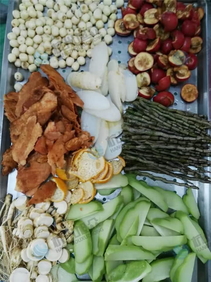旭眾真空油炸機現(xiàn)場低溫油炸中藥材:人參、石斛、核桃等: