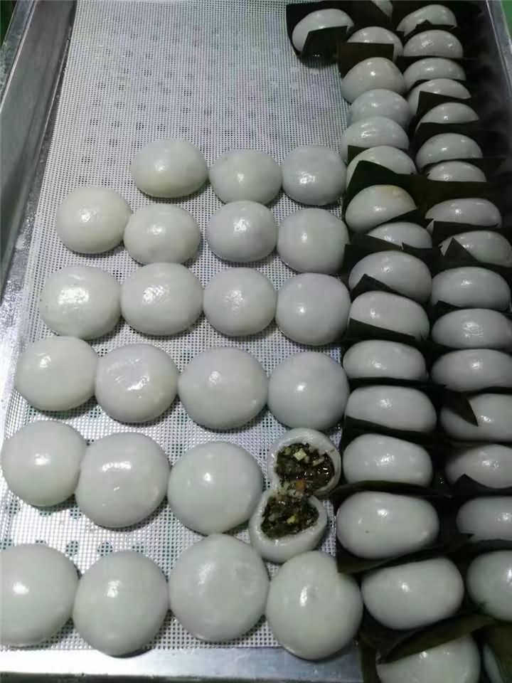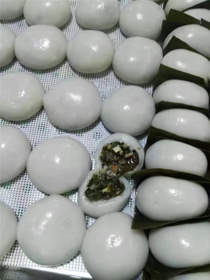 旭眾VFD-4000A湯圓機(jī)做葉兒粑啦,也可以成為豬兒粑,效果是杠杠的,我們來看下未蒸前與蒸好后的葉兒粑效果: