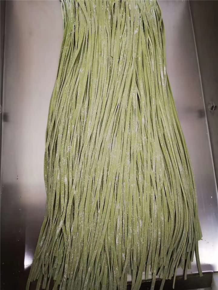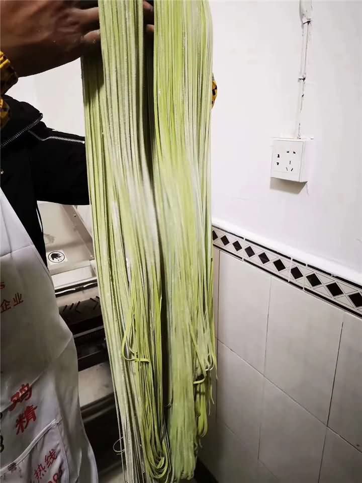 蔬菜面莊定購(gòu)的大型掛面面條機(jī)來反饋咯!做的綠色蔬菜面條效果杠杠滴,來吃面條的客戶也是越來越多!