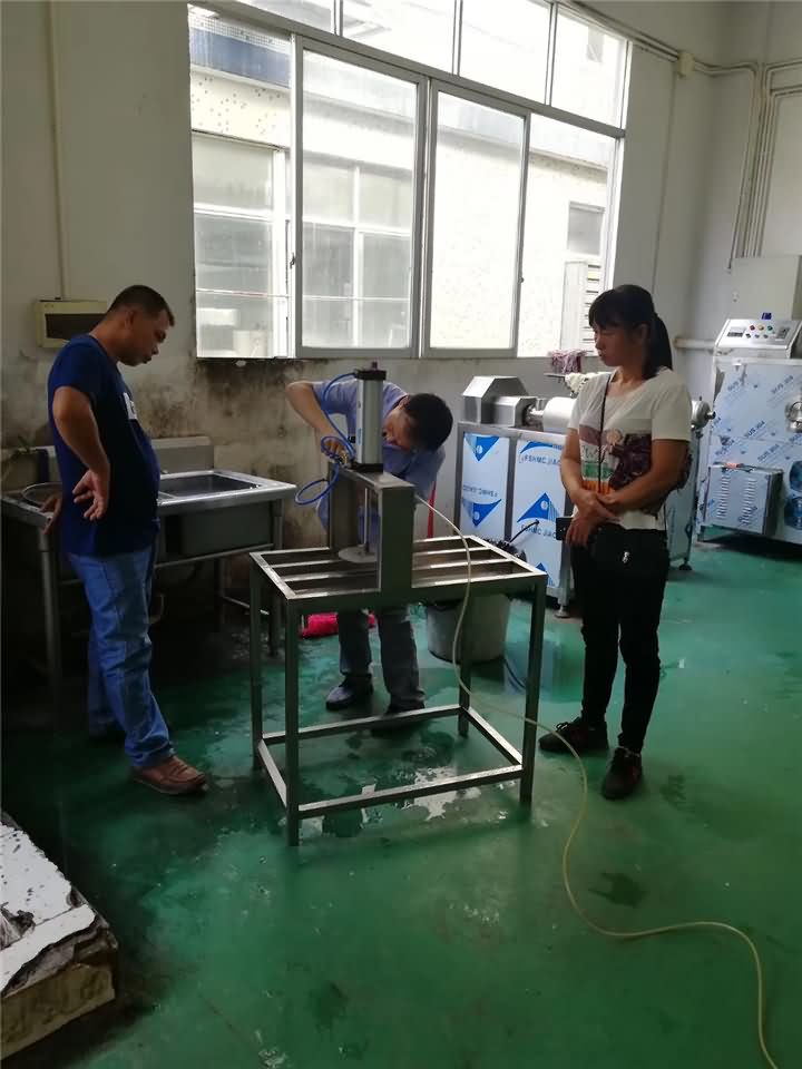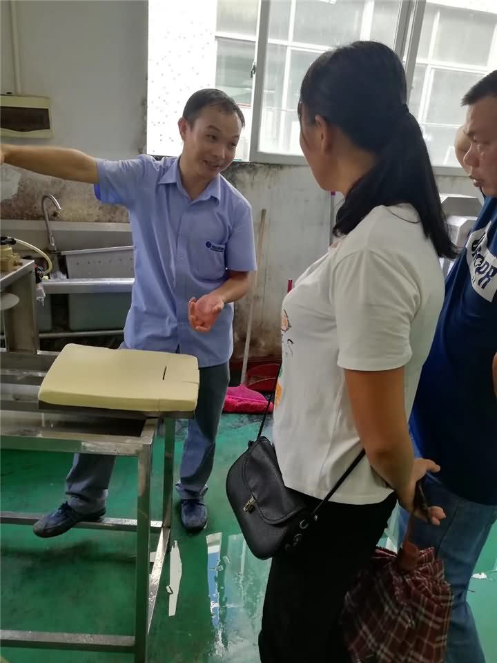 客戶上門考察豆腐機現(xiàn)場演示做豆腐過程: