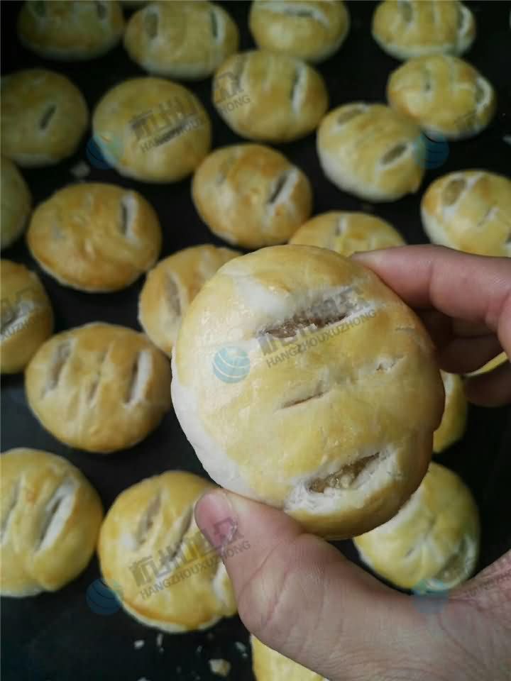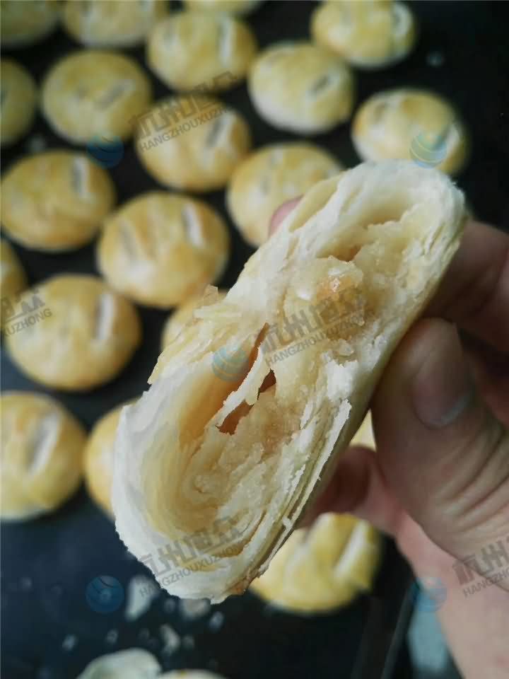 客戶預約上門考察酥餅機,直觀酥餅機做老婆餅的效果: