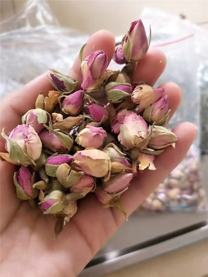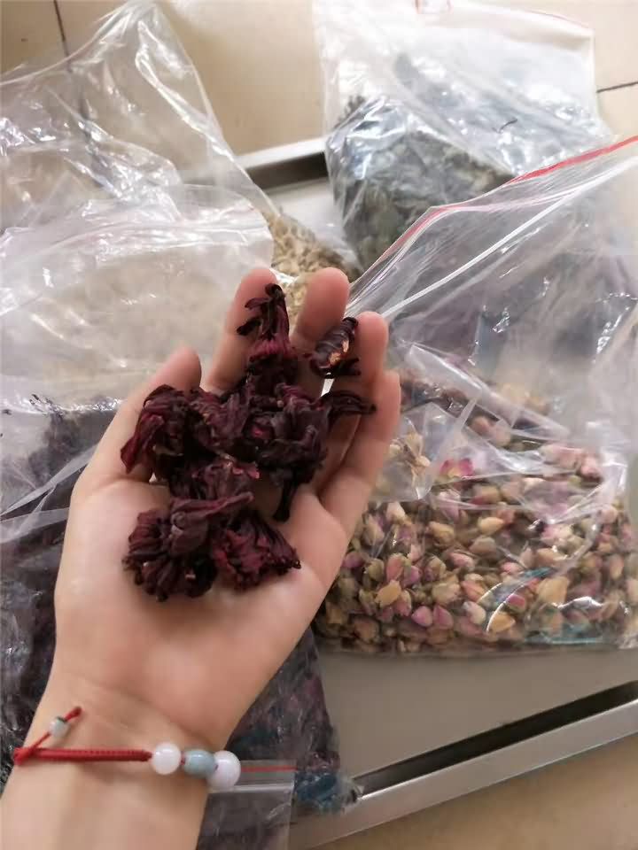 旭眾不銹鋼破碎機破碎篩網孔徑標配6mm或者8mm,另可定制10/12/14/16/18/20/30,一般不定制小于6mm的孔徑,遠在新疆的劉老板寄了他家烘干好的玫瑰花等物料來到現場,并直觀了用破碎機破碎后的效果: