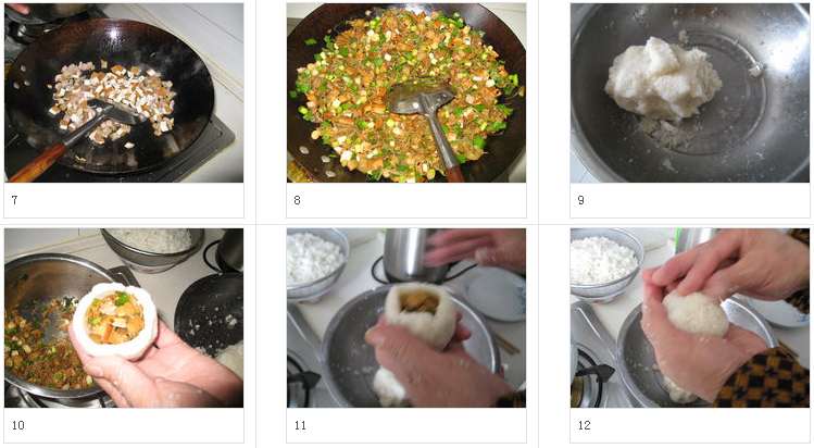 11.慢慢把口捏攏。這個不比面團,沒有彈性,故只能不斷的把米團往上推,最后合上口。如果感覺比較粘,可以放一邊沾水處理。