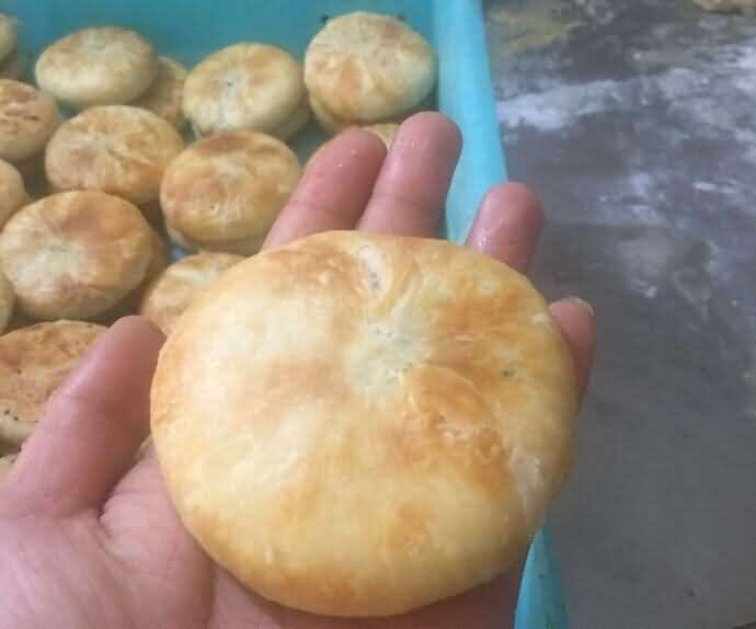 酥餅(Crispy Cakes ),系有特制的脂烙酥而得名。脂烙酥用上好的豬油,拌以適量蒸好的面粉,化油時加適量花椒、桂皮,油化后剔出已炸酥的花椒、桂皮,再和面成餡。火燒皮用香油和面,包制好入爐,用文火烘烤而成。其特點是皮酥,瓤有異香而不膩。